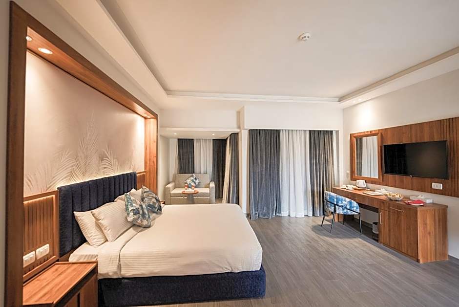 Featuring a balcony with side sea view, this air-conditioned room offers a small seating area. The bathroom is fitted with a hairdryer.